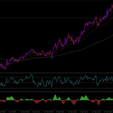 Feel free to use your favorite oscillators and colors. This is only a guidline. Keep it simple, you only need 2 oscillators. I find that using 2 oscillators agree it is a stronger signal than just one.NB: An MT4 Metatrader template has been included in the 'Downloads' section.Indicators and settings:Relative strength index (RSI) - Period 10, applied to close.Stochastic - %K period 8, Slowing 3, %D period 3.Moving average of oscillator (aka OSMA or MACD histogram) - Fast EMA 8, Slow EMA 17, MACD SMA 9, applierd to close.Moving average exponential (aka EMA) - 5, 13, 50, 200, 800 or just a 21, 50, 200 are sufficient.Basically I use the oscillators to detect divergence and the moving averages for trend direction.Note: I sometimes confirm the trend using the RSI indicator. When the RSI is above the 50% level on the current time frame and the time frame 4 to 6 periods higher AND the moving averages are in order, then it is a stronger trend. More on this later.